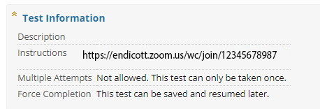 When the students begin the test, the Zoom meeting link will be accessible at the top of the test page.